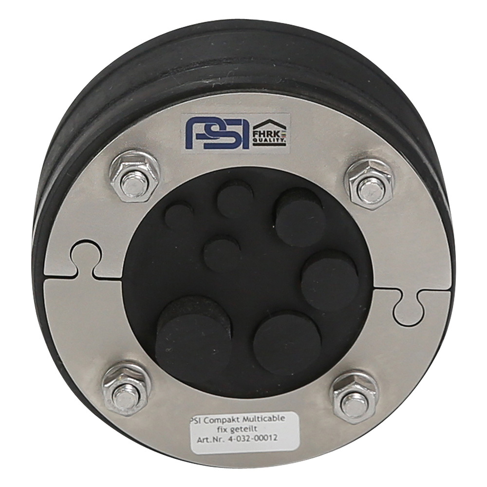 Mehrfach-Bauwerksdurchführung für kleine Rohrdurchmesser, Schläuche und Kabel. Das System ist teilbar und für den nachträglichen Einbau geeignet.