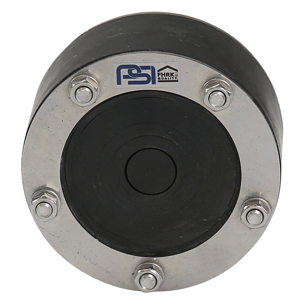 EPDM-Kautschuk; Shore A 43° ±5; Gewindegröße M6 (ab Varia 200 M8); Druckplatten Edelstahl; Gummidicke 40 mm