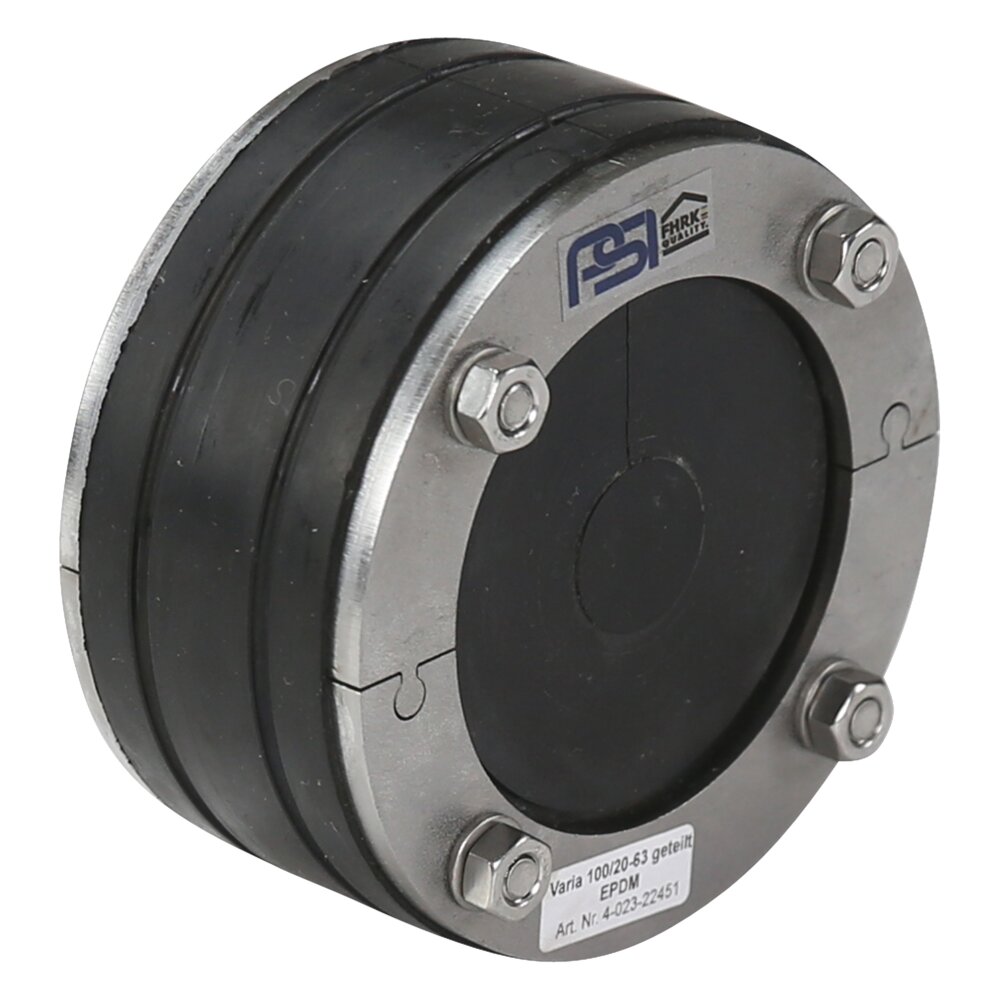 Speziell angefertigt auf Kundenwunsch. Variationen sind möglich z.B. ovale Rohre oder eine exzentrische Lage. Durchführung mehrerer Rohre und Kabel in geteilter oder geschlossener Ausführung. Für Wanddurchführungen von gedämmten oder gewellten Rohrleitungen, insbesondere KMR-Rohre in der Fernwärme / Fernkälte werden 2x40 mm Gummidicke verwendet.