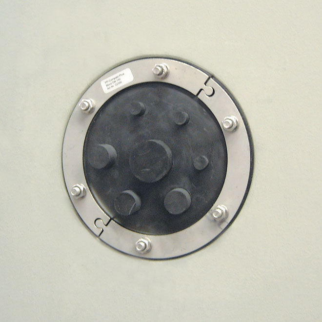 Abdichtung von nicht belegten Mauerdurchführungen als Blindverschluss.